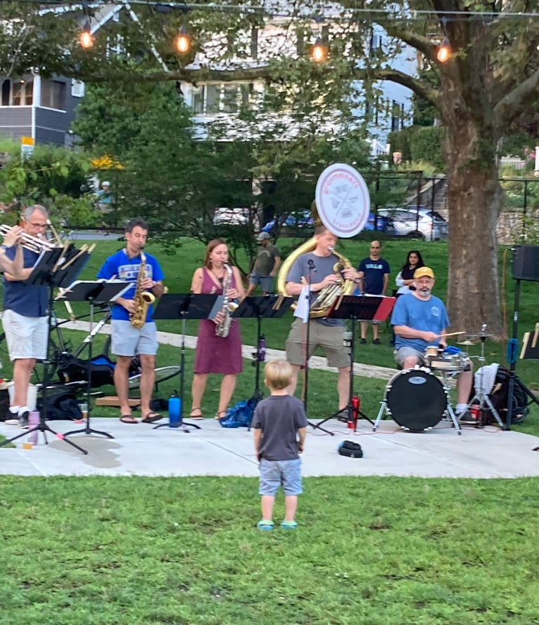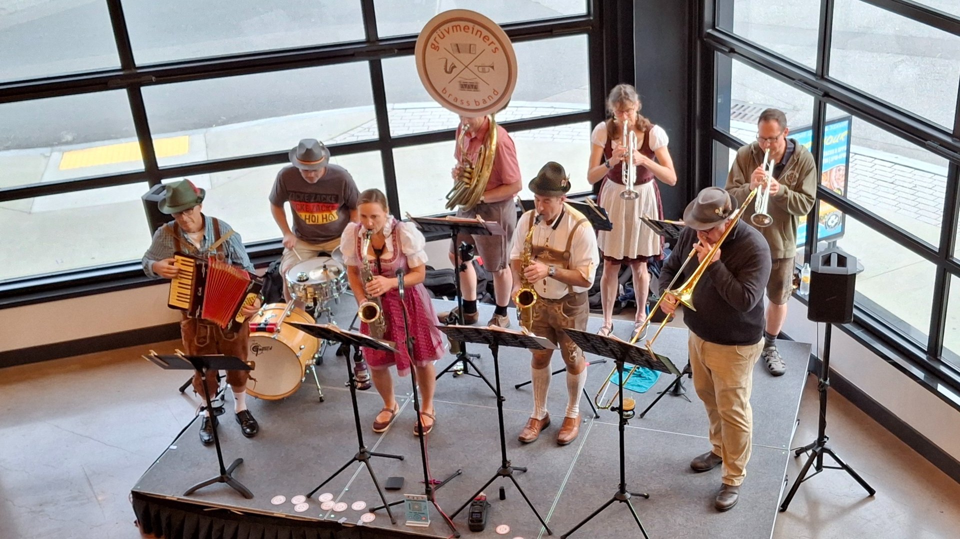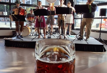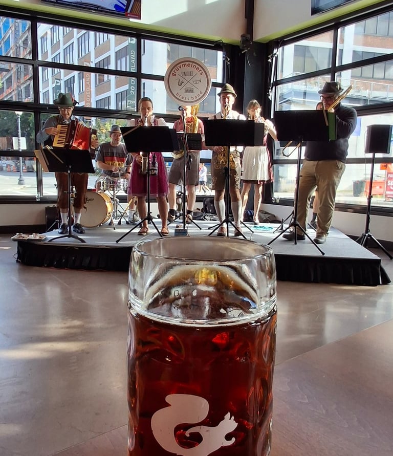 "The Grüvmeiners are the best oom-pah-pah band this side of the Atlantic! They smash together traditional old-world drinking songs with wildly fun pop hits, including iconic 80s anthems reworked for full brass, and turn every room into a high-energy, beer-glass-raising party. When the Grüvmeiners play, it’s loud, joyful, and impossible not to smile."
